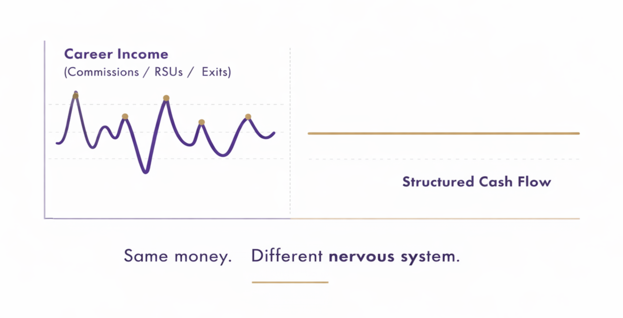 Most high earners accidentally build a powerful career compensation engine. Commissions, equity, bonuses, exits. What they never build is a money system that converts those outcomes into dependable cash flow.