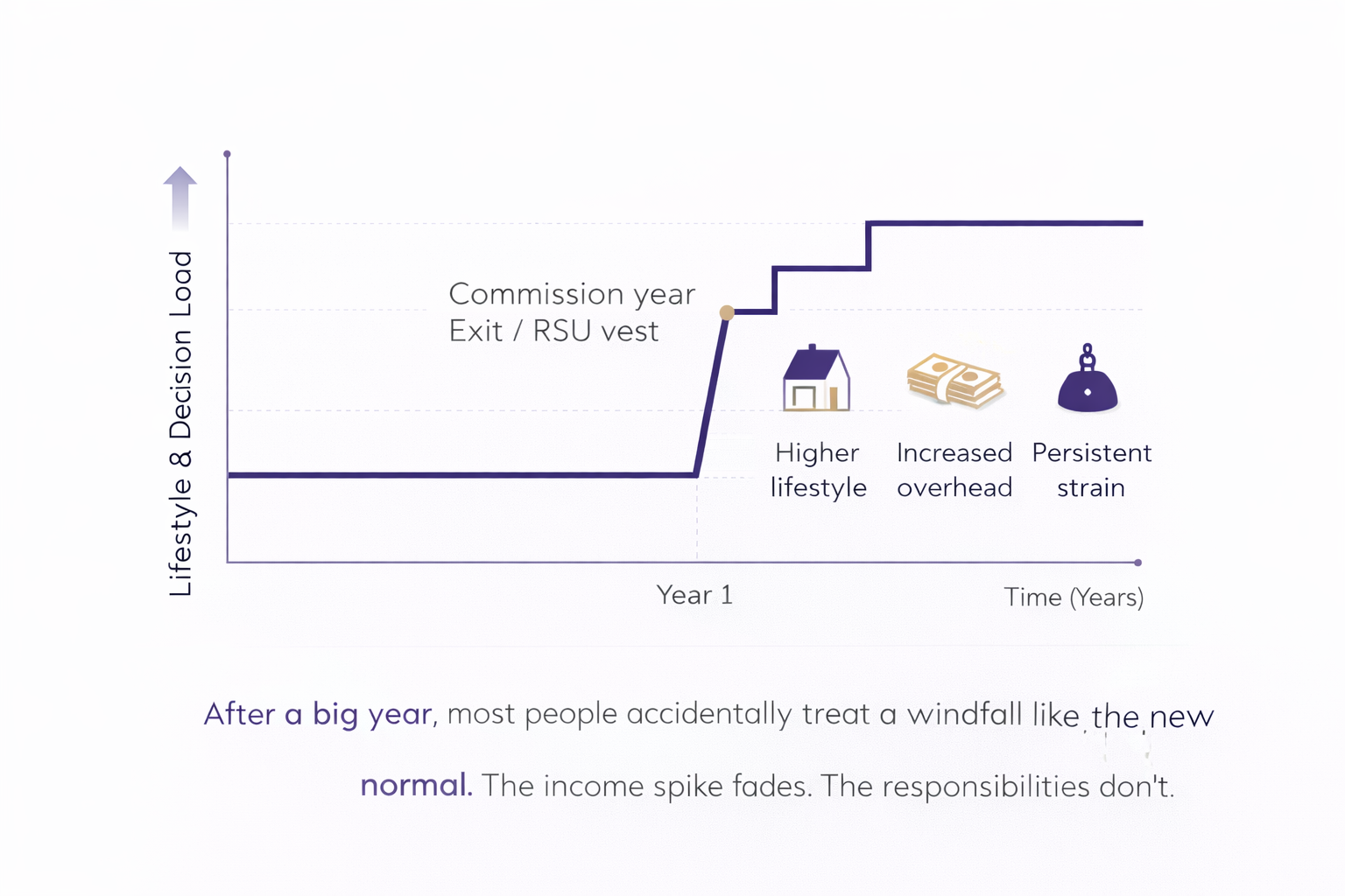 It does not matter whether the money came from commissions, equity compensation, or a liquidity event. Once it is in your account, your lifestyle adjusts.